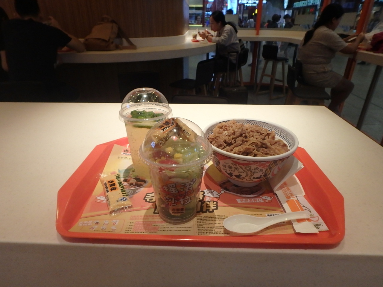 レストラン(フードコートレベル)がたくさん入っていて、私は吉野家へ。