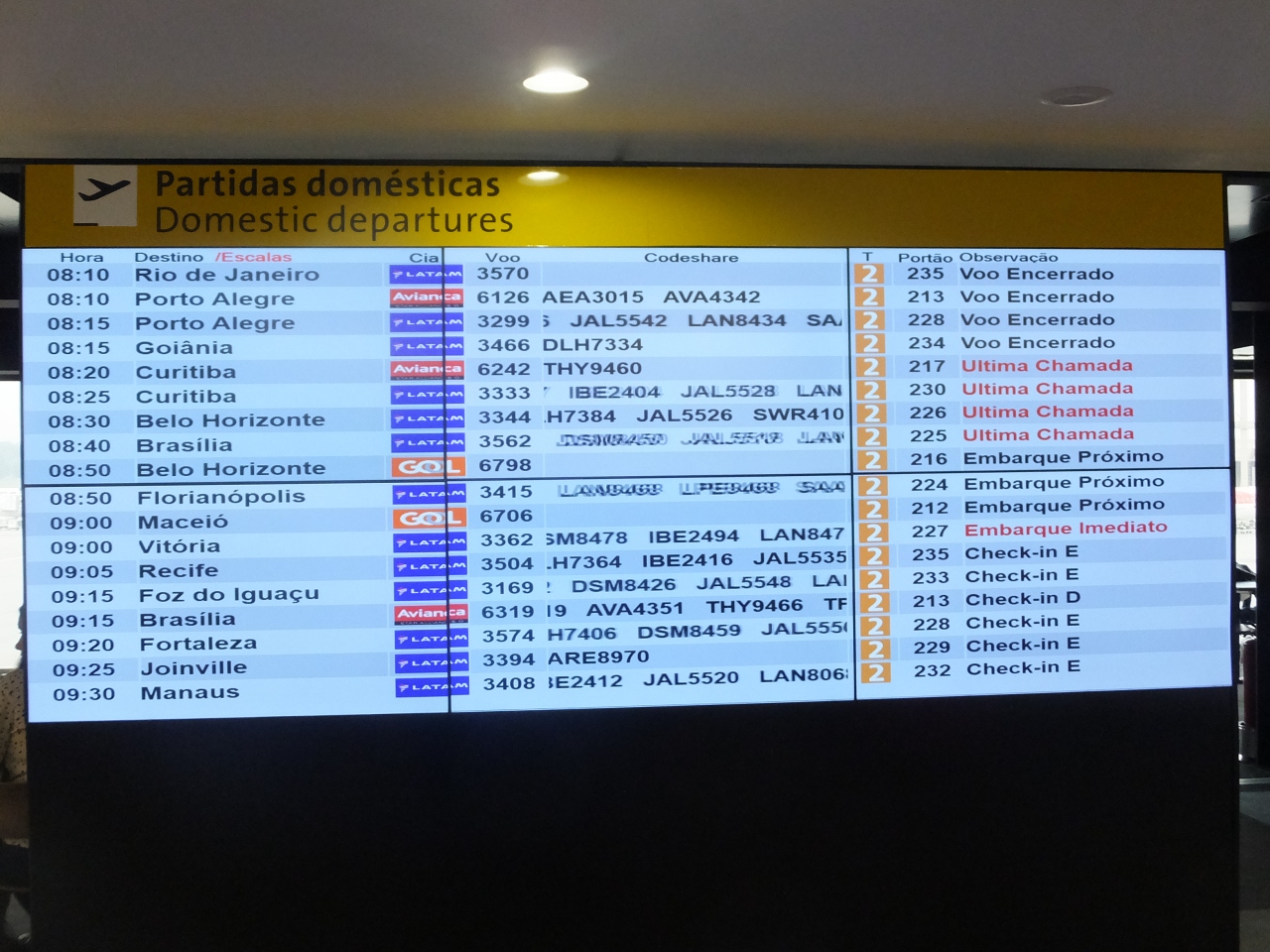 全部で4つのターミナルがあるそうですが、私が利用したのはターミナル2(ゴル航空で出発&到着・ラタム航空で出発)とターミナル3(エアカナダで到着)のみ。