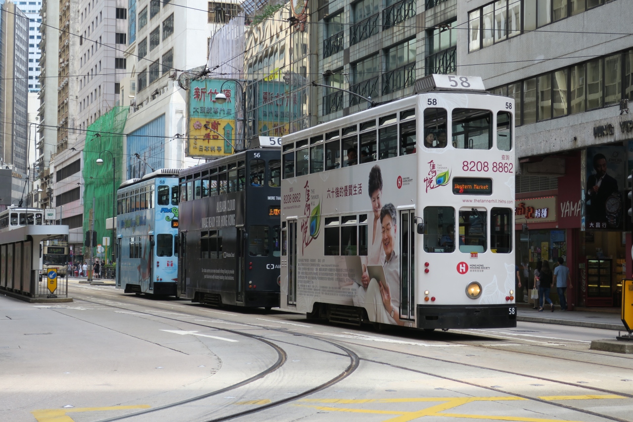 香港島をのんびり走る,便利な交通手段です.バスと同様に二階建てなので,特に二階席からは香港の街をゆっくりと眺めることができます.