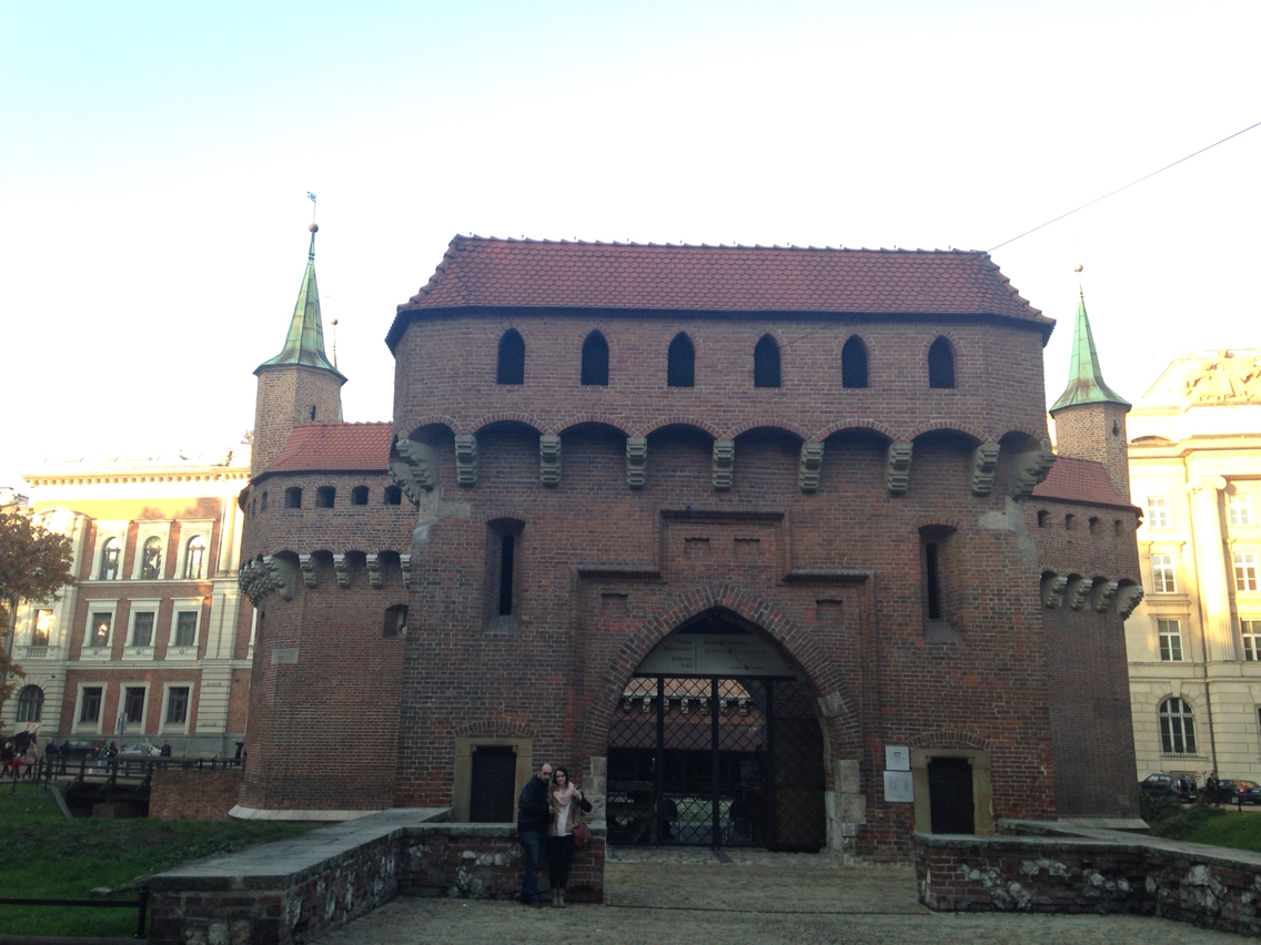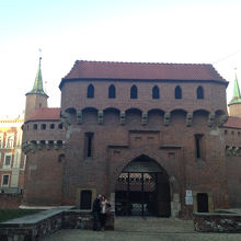 中央市場広場から北側にまっすぐ通りを歩いていくと、フロリアンスの門があり、その先にレンガ色の丸い砦(バルバカン)があります。昔はここを通れないと旧市街にも行けなかったと思うと、街の守り神のようでもあります