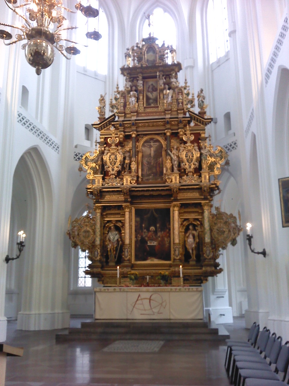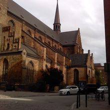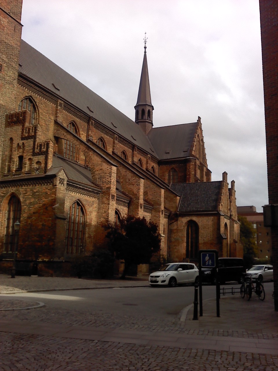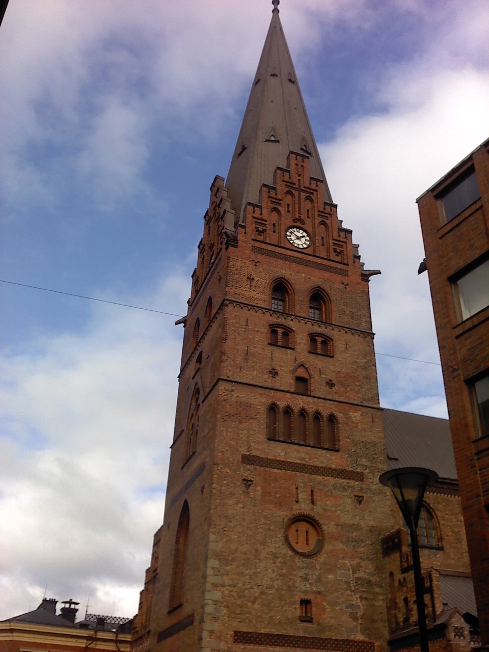 マルメ中央駅から、南にストリィ通りを下り、広場に出ると、左に市庁舎があり、その奥にあります。とんがった塔が見えるので、それを目印にいくとよいです。