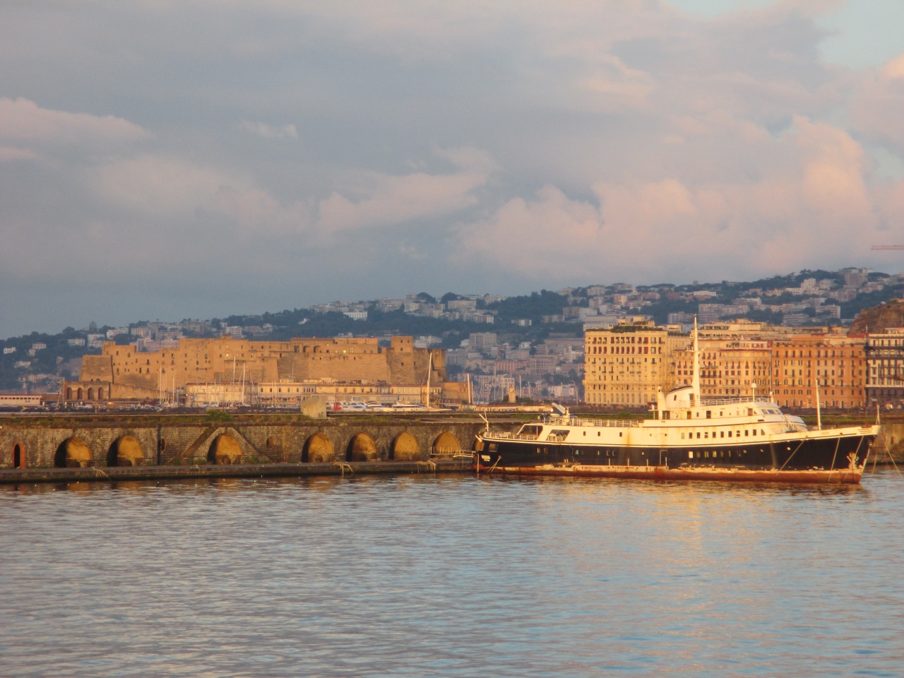 ナポリからプローチダ島へ行きました。所要時間は1時間ほどです。私の船は、プローチダからイスキア島へ行くとあって、スタッフが「プローチダだよ」と何回も念押ししてくれました。ただ、色とりどりの港を見れば、さすがに誰でもプローチダ島だとわかります。