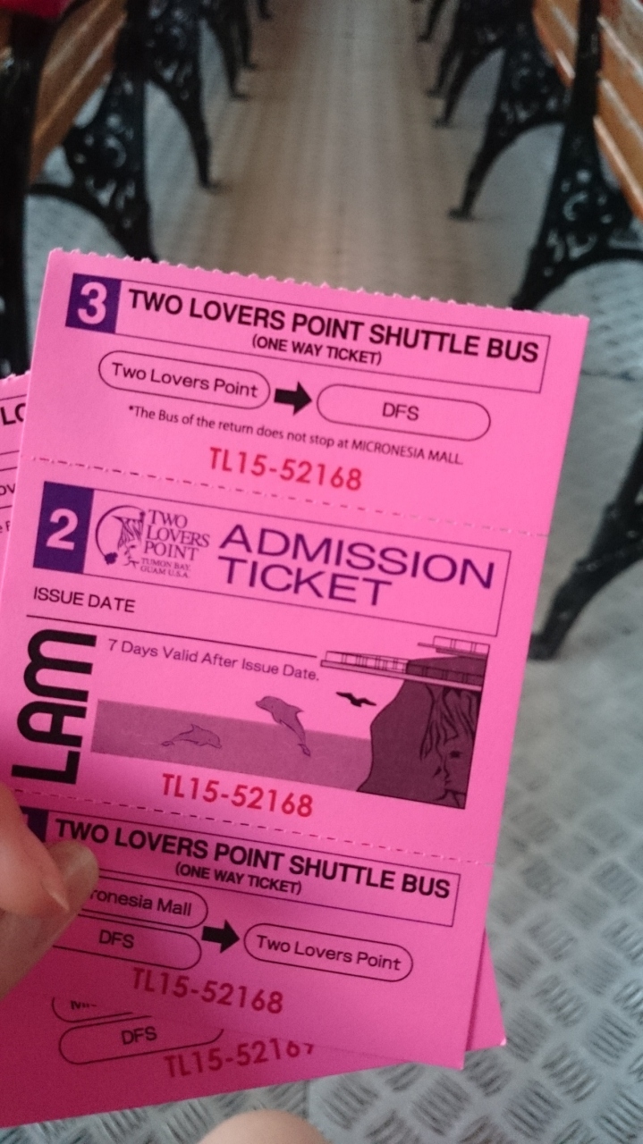 DFSとjpストアーとマイクロネシアモールからでているシャトルバスです。乗り放題チケットでは別料金になる場合が多いので注意が必要です。恋人岬の入場券も値段に含まれました。暗くなると車では行きにくいので、シャトルバスは便利でした。外の看板の時間は到着時間なので注意が必要です。