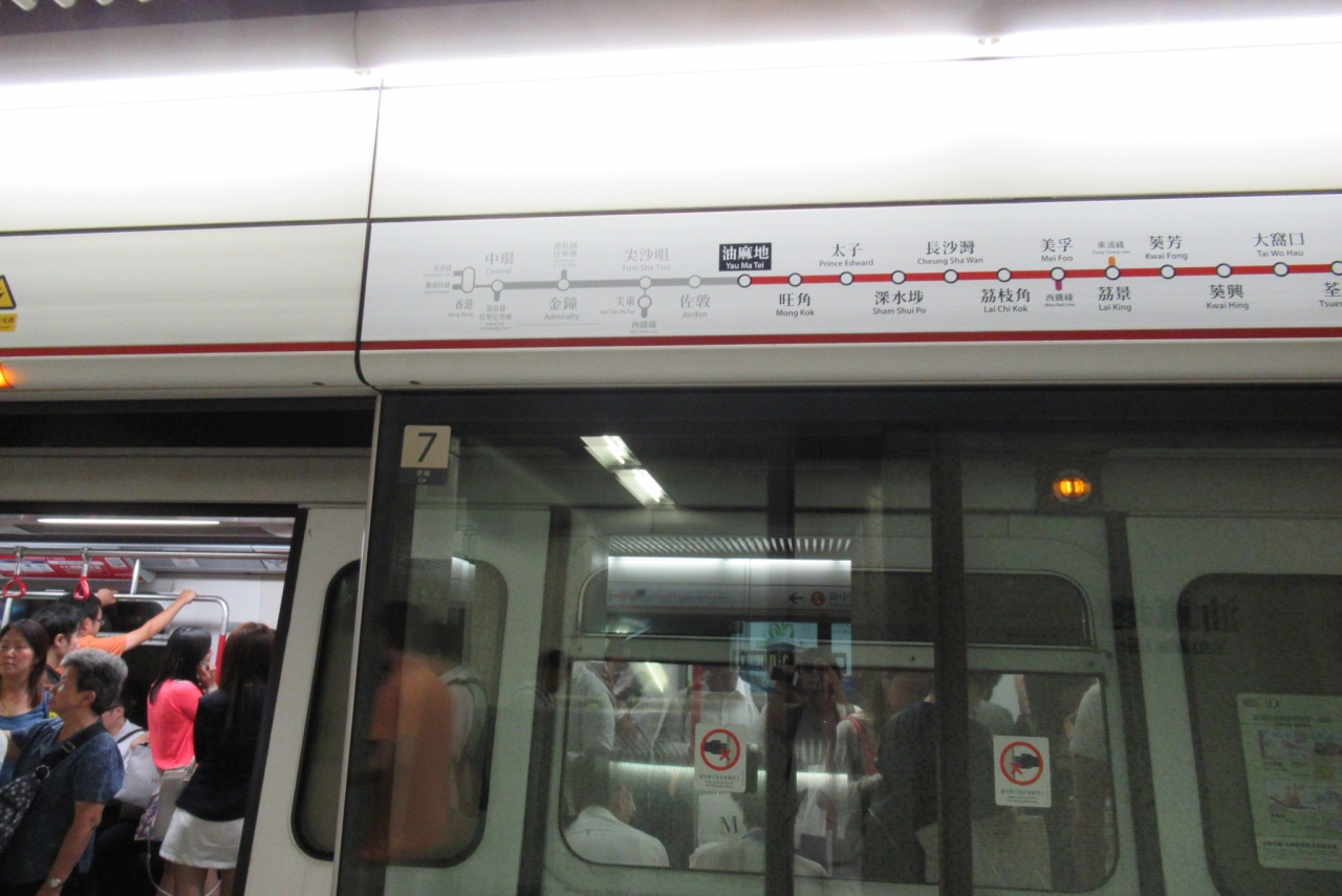 緑色(九龍半島 油麻地から東へ向かい クントン方面)へ行くライン。
