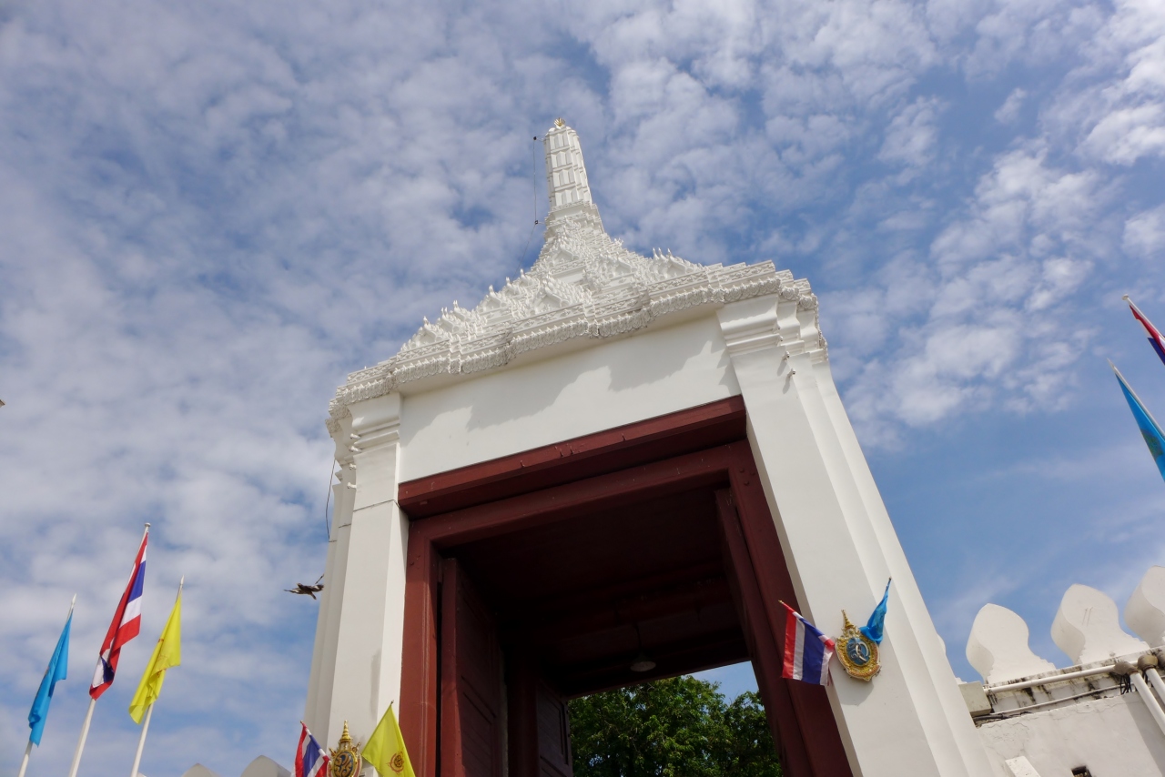 バンコク観光の最大の目玉、ワット プラケオと王宮への入り口に相当する白い門でいつも警護の兵隊さんが立っています。
