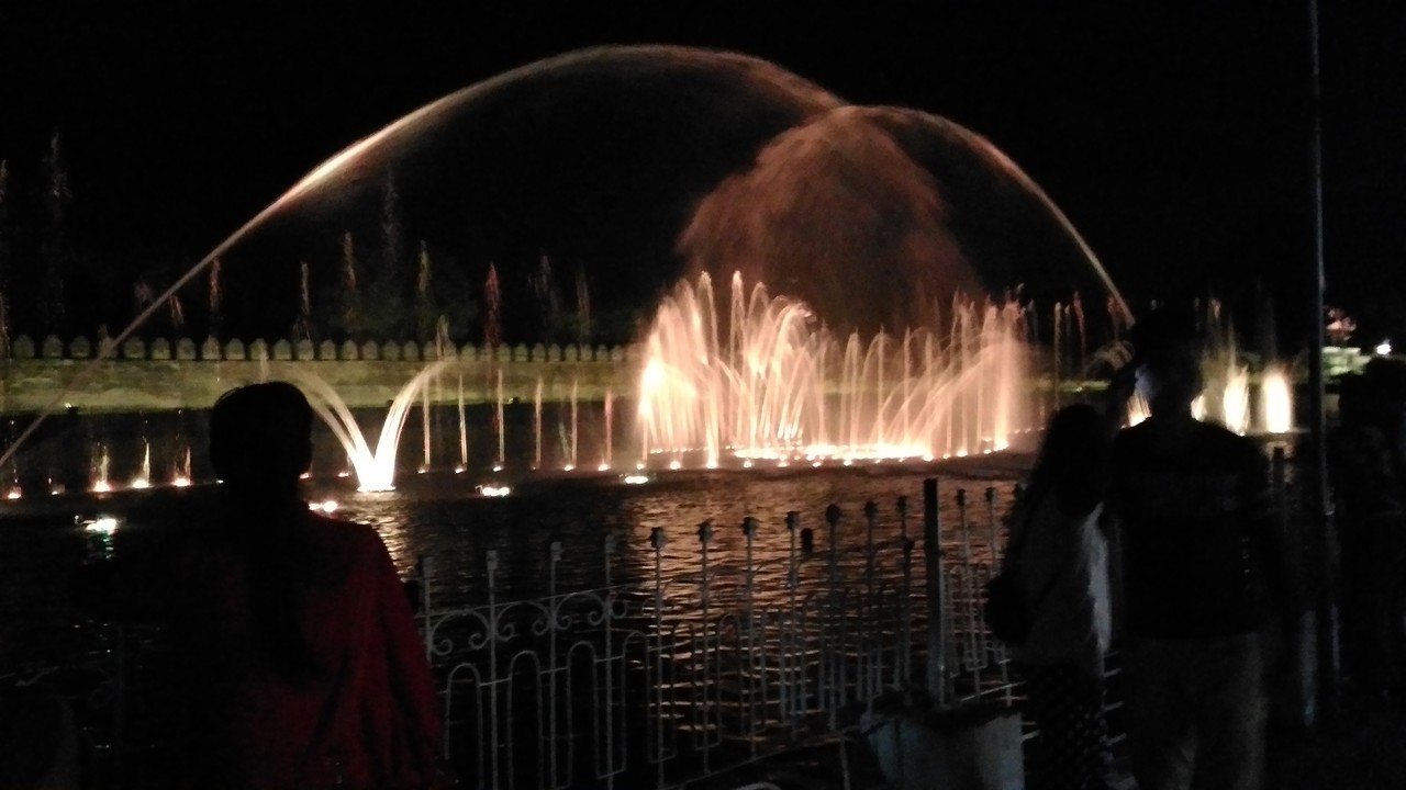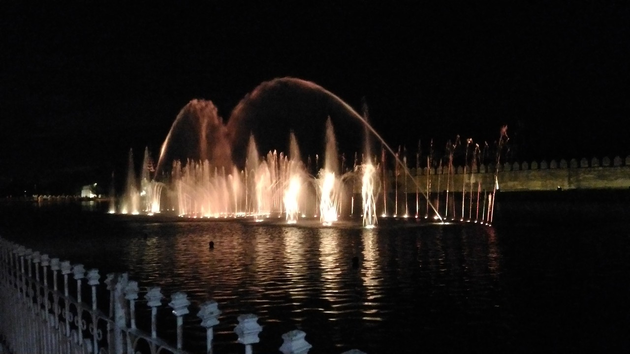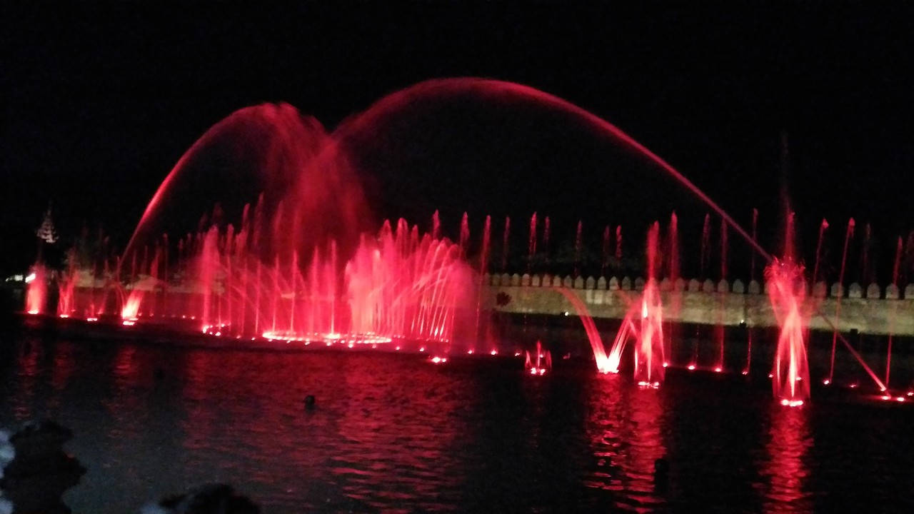 噴水は色や形をかえ、音楽が大きな音量で流れています。