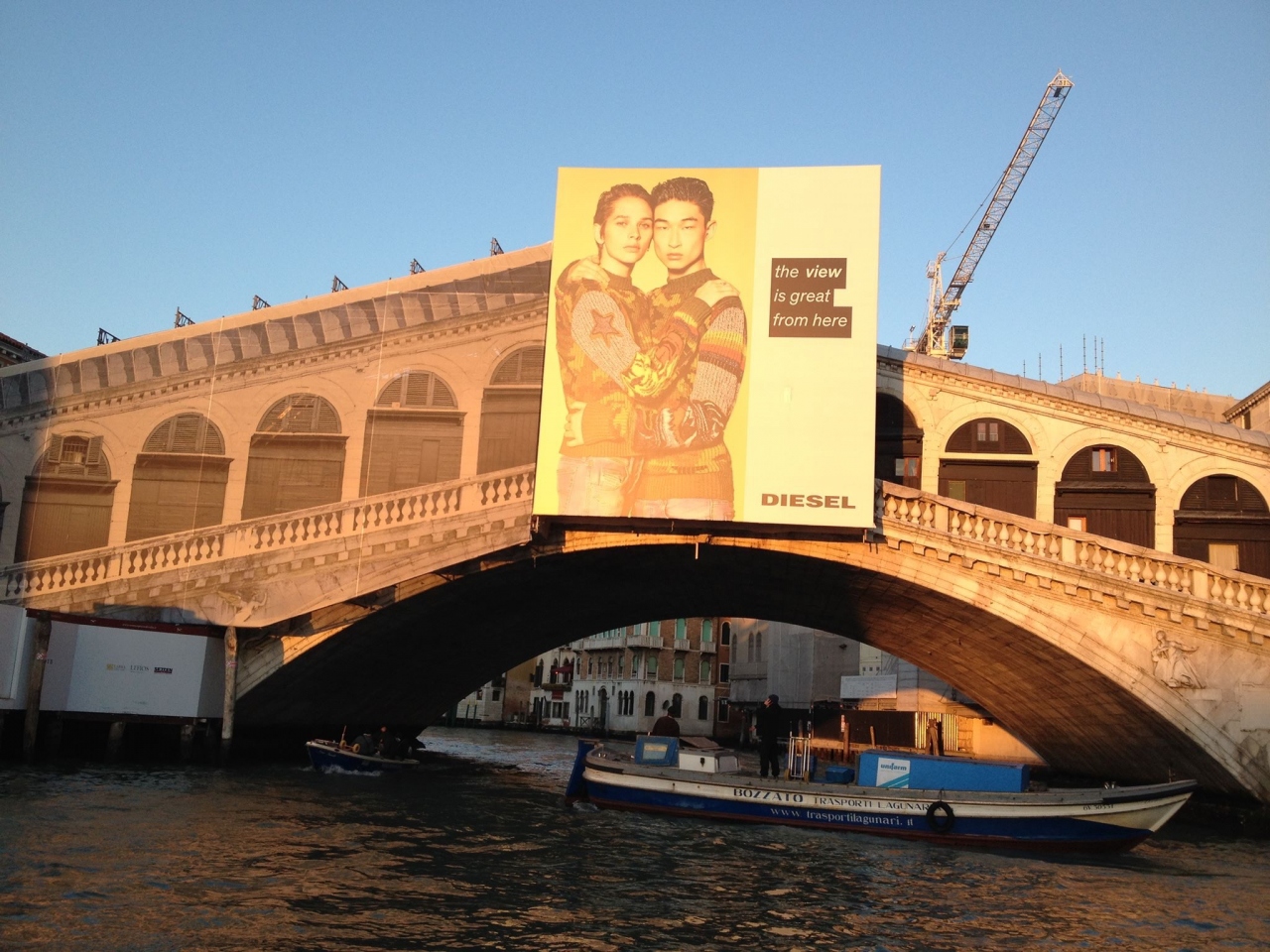 水上バスからみた橋はポスターがデカデカと貼ってありなんとも残念な感じでした。