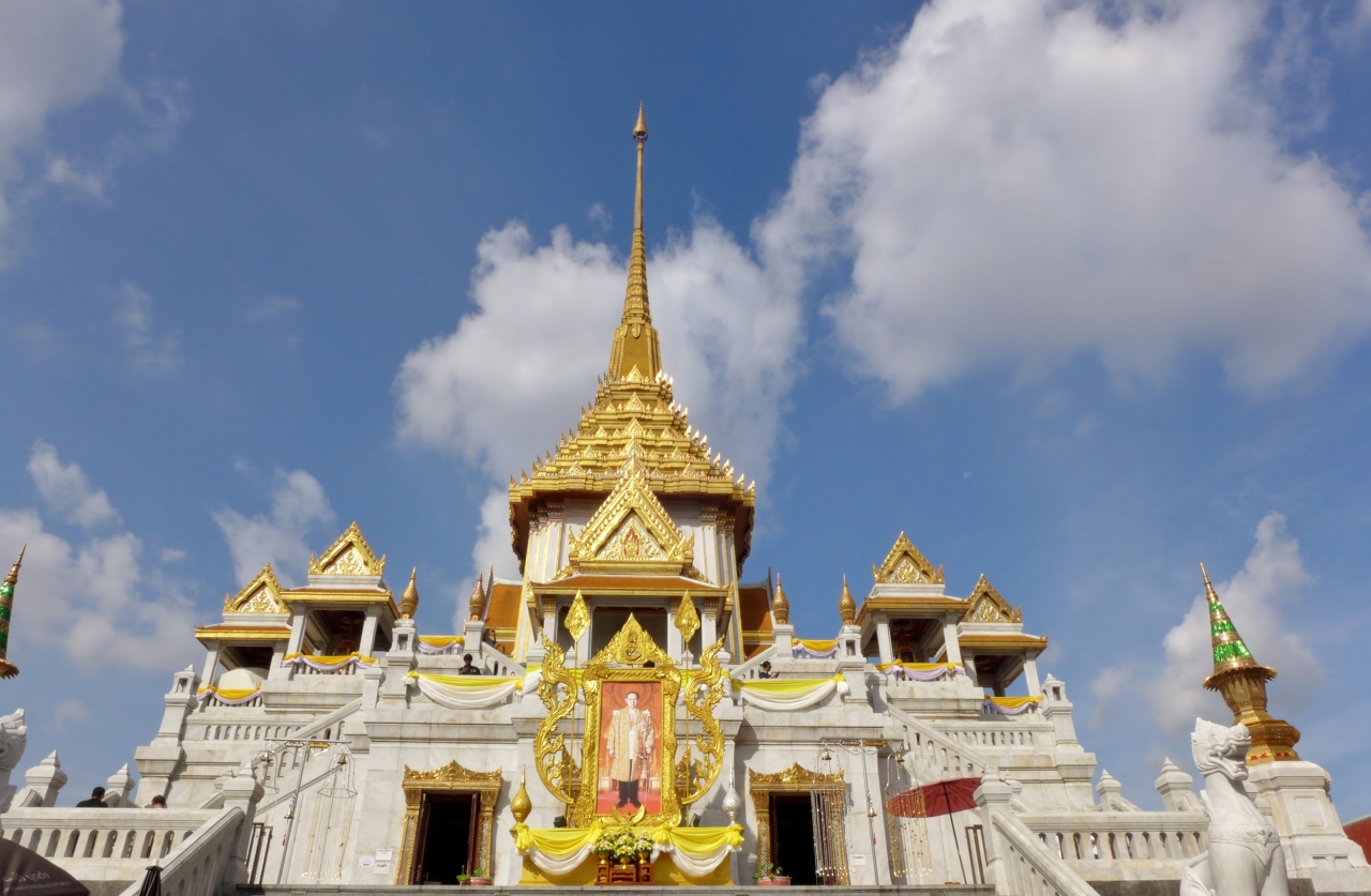 ワット トライミットはチャイナタウンにある大きなお寺で白い壁と金色の屋根が青空に映えていました。