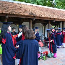 中国の影響を色濃く残しており、昔の科挙に受かった人達の名前を刻まれている石などもありました。奥には宿舎があったらしく、そこで学生さんたちが暮らしていたそうです。