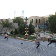 城壁にボールをぶつけている子もおり,世界遺産の中で遊べるなんて