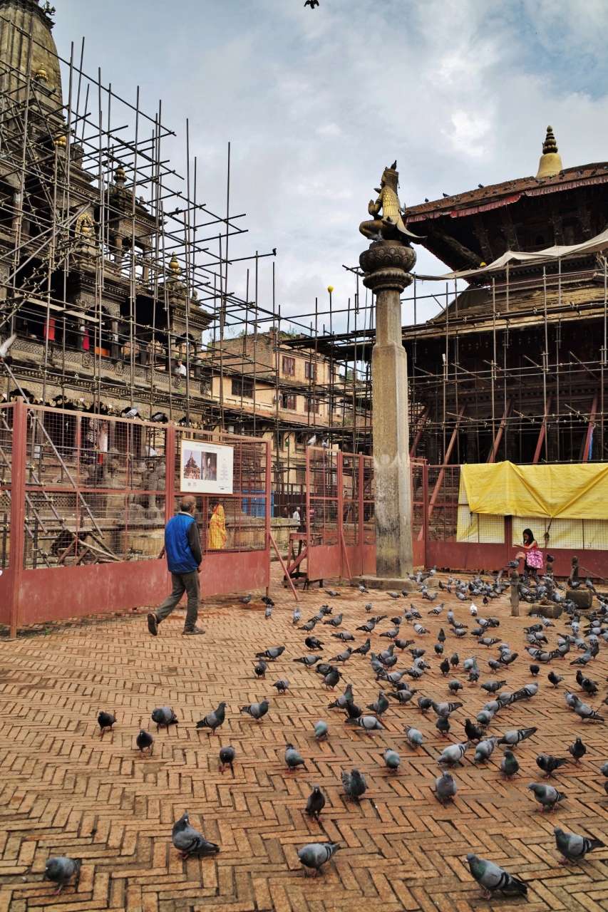 残念ながら2015年の地震により被害を受けて、訪れた時は足場が組まれて復旧工事が進められていました。