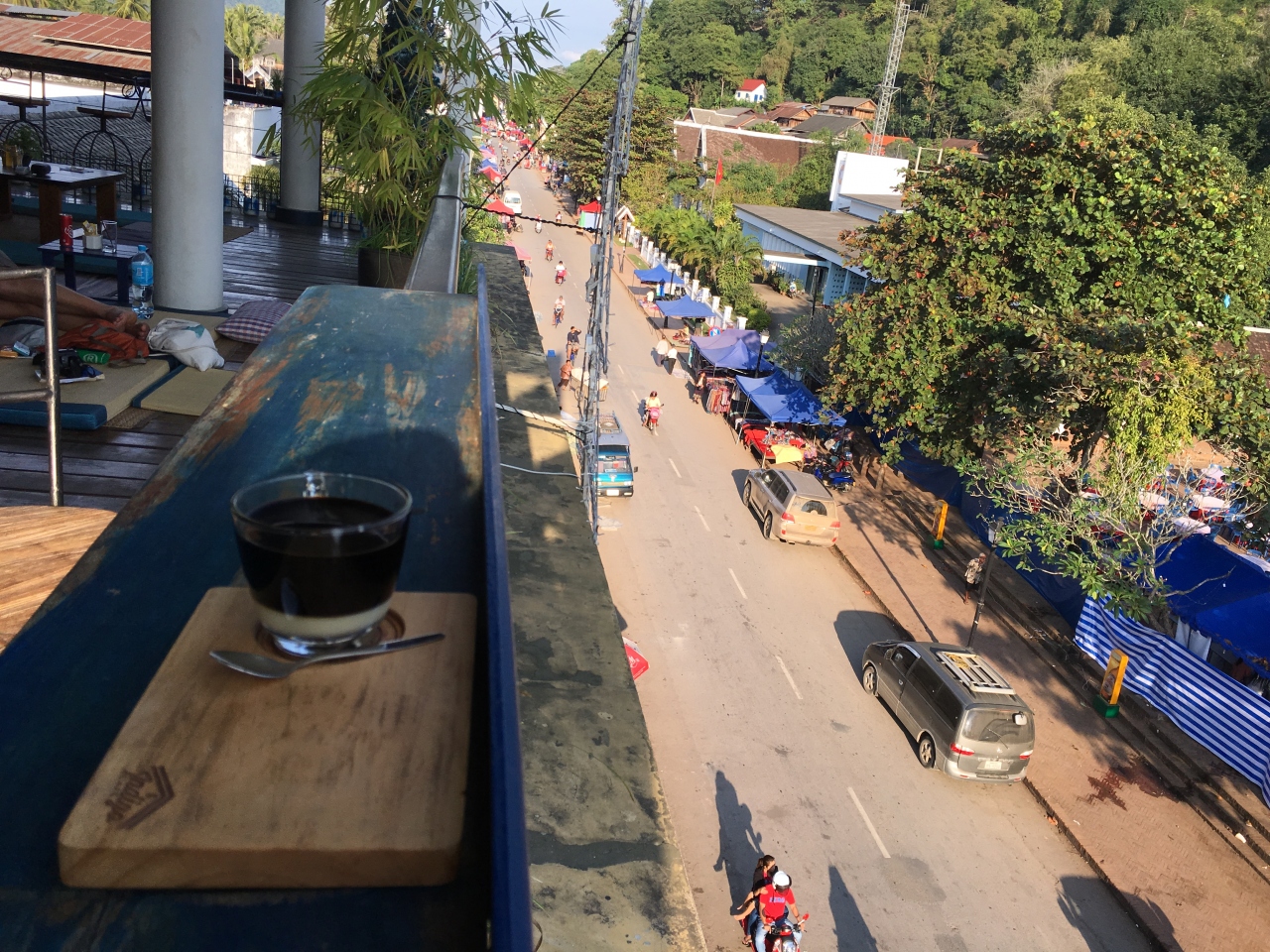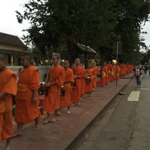 道の両脇には伝統様式の建物のお店が建ち並び、途中には王宮博物館やお寺などもあります。また朝は托鉢、夜はナイトマーケントが催され、ルアンパバーン観光の核となる通りです。あまりに観光地化され過ぎているため、どこかテーマパークすら感じさせる通りでもあります。