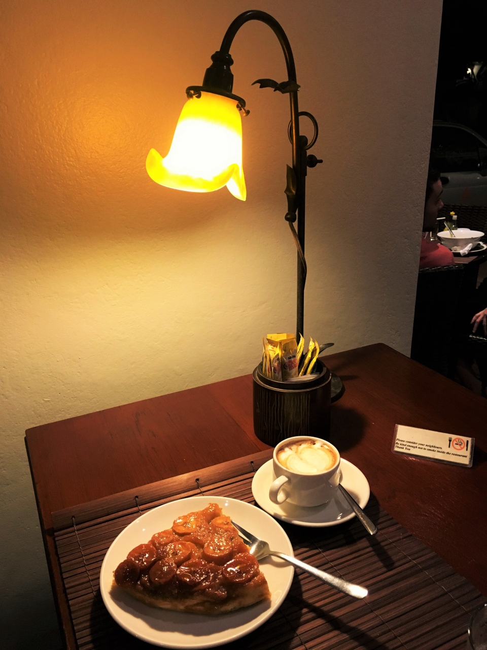 夜にカフェで利用したときは、サービスが丁寧で洗練されていて好印象。値段は日本並みで食べ物は日本よりも割高。ただし飲物は20000kip前後、スイーツ類は30000kip前後とカフェ利用は食べ物に比べお手頃プライス★お味も量もまずまずでしたが、フランス本国のケーキと同じように甘さはややドロ甘系。