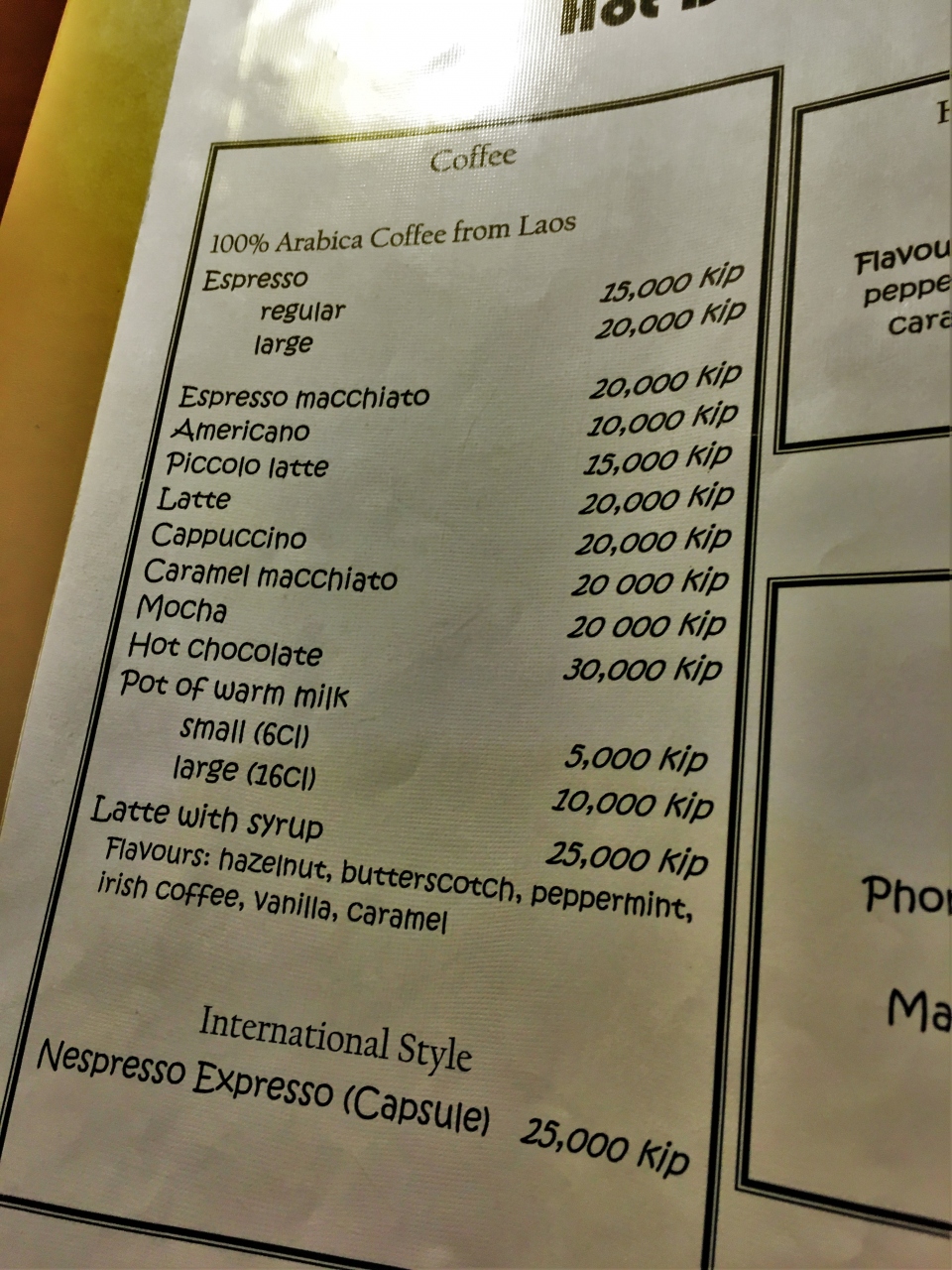 ルアンパバーンらしく観光客向けのお高めフランス風カフェですが、レストランより敷居が低くカフェ利用もご飯を食べたい時にも使える便利なカフェです。