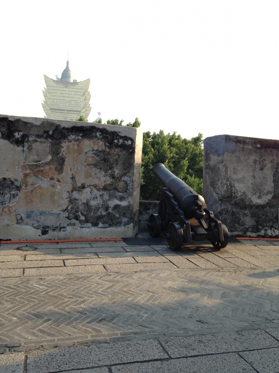 四方八方大砲があり海は見えず何に向かって撃つのかと思いました。セントポール天主堂跡を見た後に左側に進めばエスカレーターがありますが気が付かづ右側のきつい階段を利用しました。景色もよくマカオの住宅事情を上から見れましたがとても疲れました。
