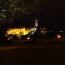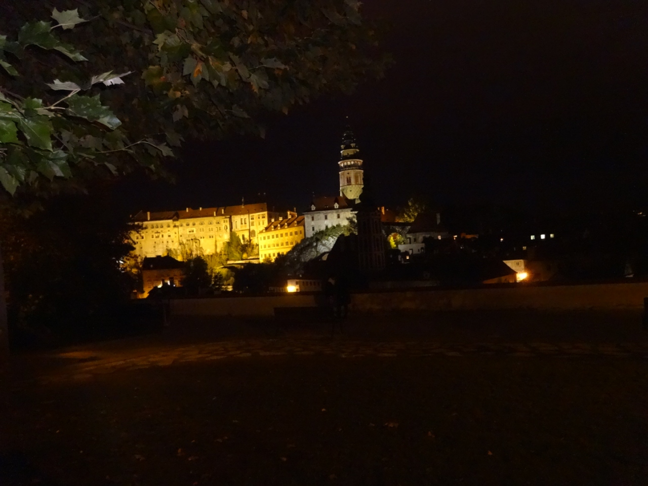 ちょうど日が暮れてチェスキークルムロフの建築物たちがライトアップされる頃で、この場所からはライトアップされたお城がよく見えました。