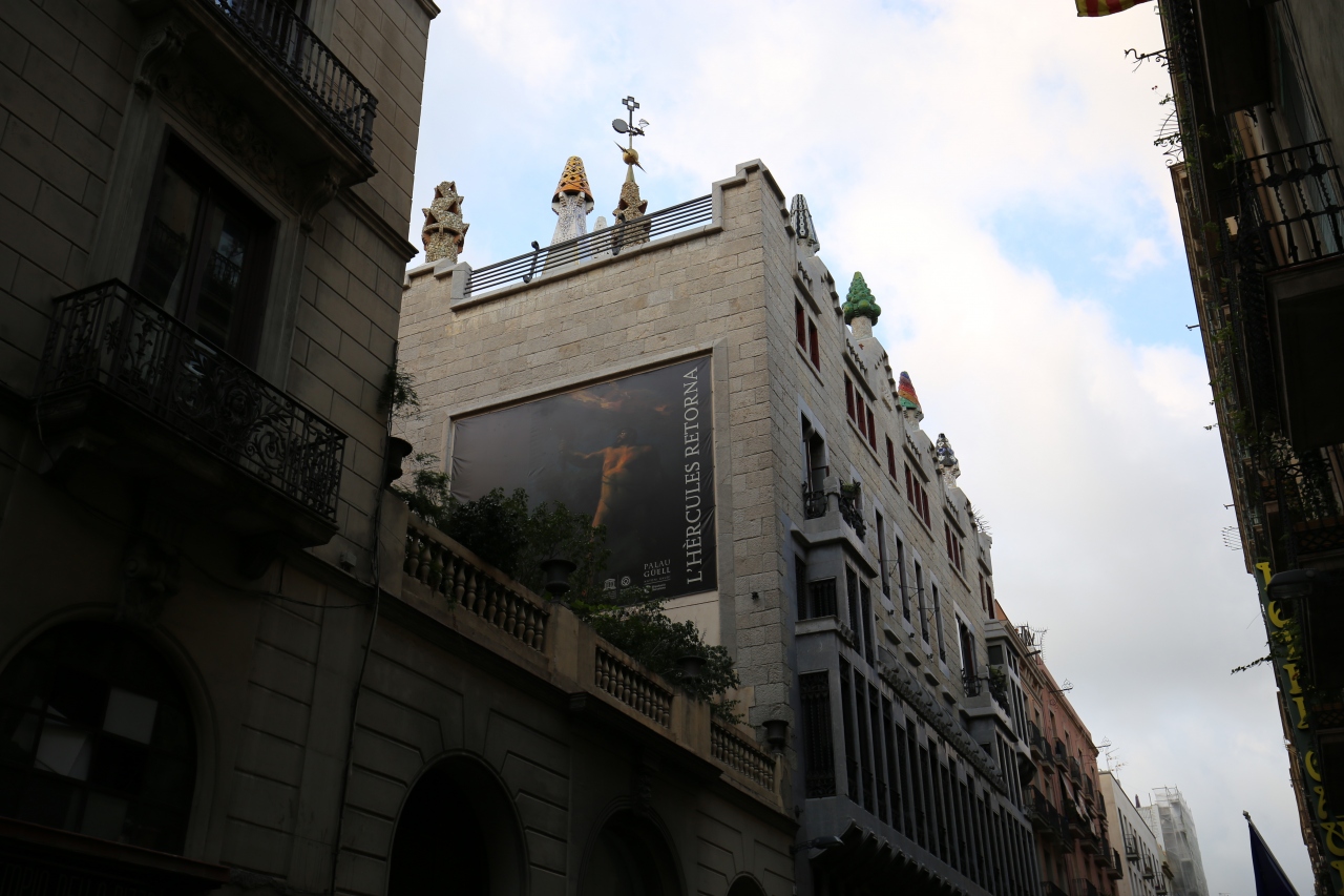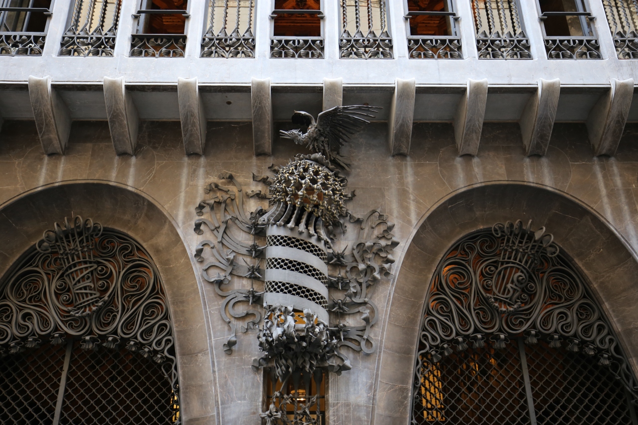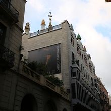 屋上にはまさにガウディ!といった装飾があり、エントランスにある紋章の大きな鳥は迫力がありました。