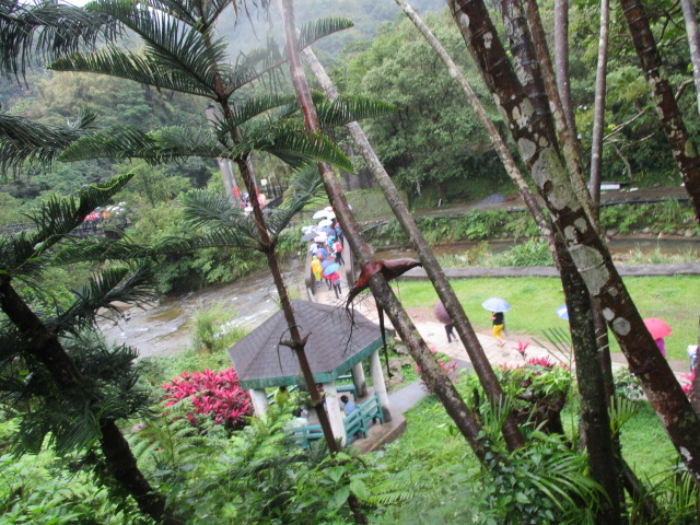 時間節約の為に、十分の中心街を通って十分瀑布に行く途中でタクシーが数台停まっていたので乗り込みました。歩いている人は多いです。でも、十分瀑布についてすぐに滝が見られるわけでなく、線路と平行した観瀑吊橋を渡って、公園のような散歩道、階段がある場所を歩きます。歩くの苦手な人はバリアフリーでないので、要注意です。