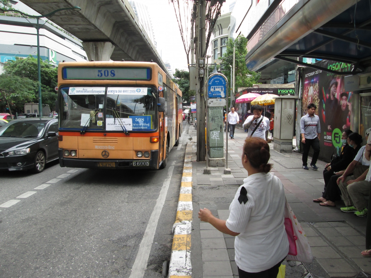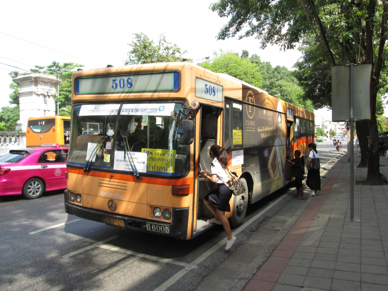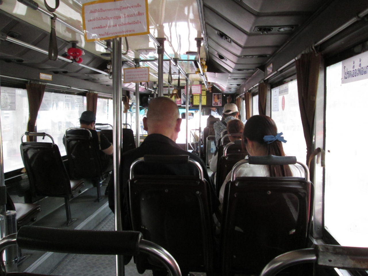 スクインピット通りからワットポーまでエアコンバスを利用しました。アソーク駅付近から508番のバスが運行しており、途中、サイアムエリアを経由して到着しました。料金は15バーツと安く、チャオプラヤー川のボートを利用するより楽にアクセスできました。