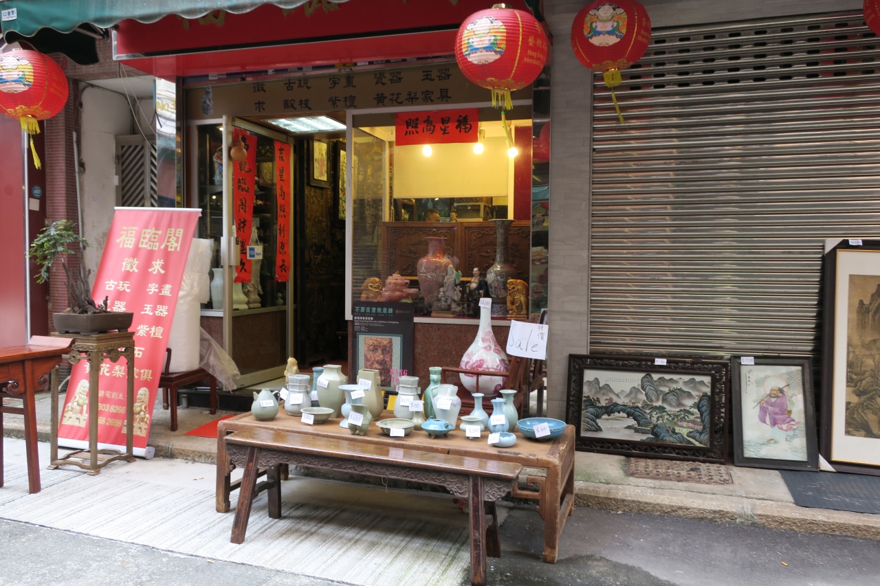 上環地区で,地下鉄やトラムの通りから少しのぼったところにある通りで,骨董品のお店がたくさんあることで知られています.いわゆる「骨董品」は,私には見る目がないのでわかりませんが,おみやげになるようなおもしろい小物もたくさんあっておもしろかったです.