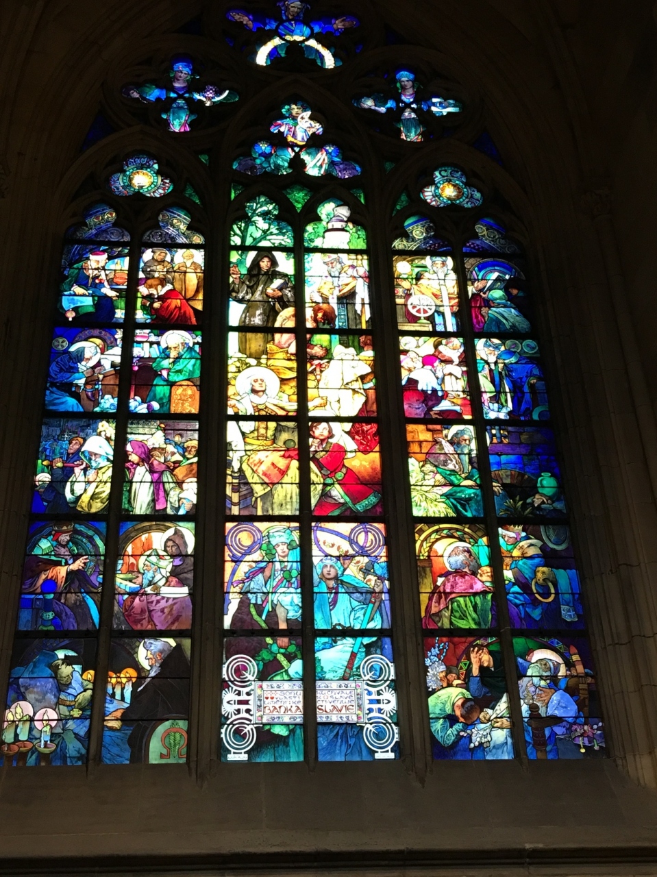 荘厳で美しい大聖堂です。天井が高く、美しい装飾が施され、ステンドグラスがならんでいます。中でもミュシャのステンドグラスはため息が出るほどの美しさでした。朝早くても人はたくさんいましたがゆっくり歩いて鑑賞しました。