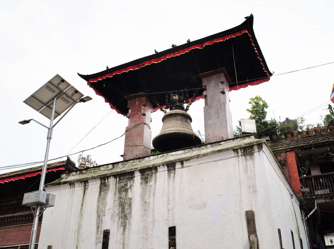 カトマンズの旧市街の中心にあるダルバール広場は2015年の地震により多くの寺院が被害を受け残念な姿を見せていましたが、こちらのタレジュの鐘は幸いにして大きな被害もなく健在でした。