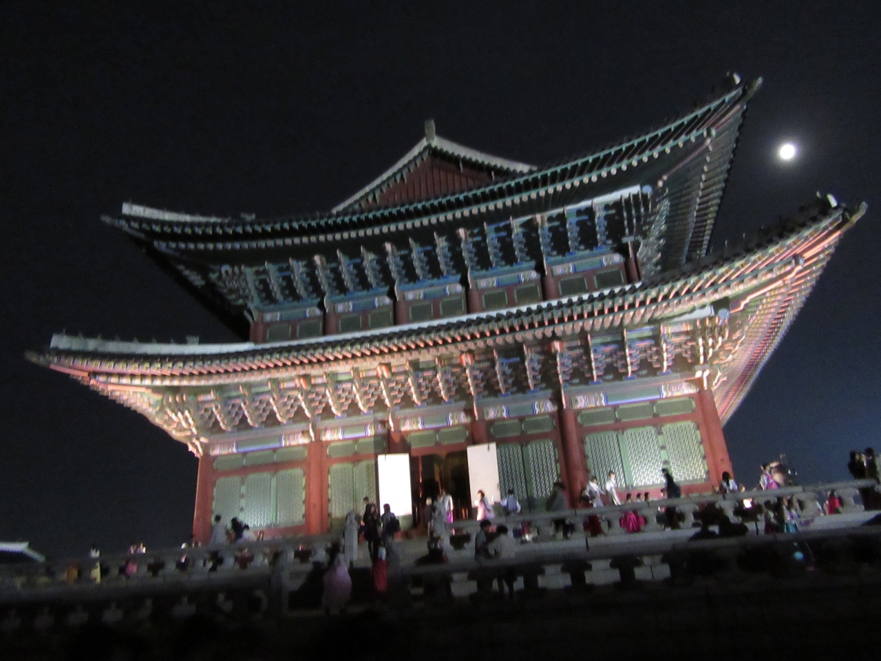 夜間開放を観ました。今回は週末1泊の旅程だったので、入場券を自身で手配する時間は無く半日ツアーを利用しました。私見ですが、この手の夜間ツアーだと基本的に近くのレンタル屋に寄り韓服に着替えて入場券なしでの拝観となるパターンのようです。レンタル屋で選んで着たら「それは宦官の衣装だから縁起が悪い」と店員に言われ着替えさせられました。(だったら最初から置くなよ)。以前昼間観た時は、ただ広いだけと思っていましたが、ライトアップされた景福宮は暗がりに映えて美しかったです。