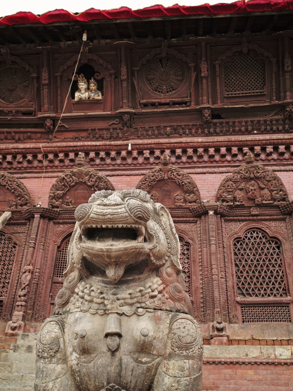 こちらのシヴァ パールヴァティ寺院は幸いにして大きな被害を免れたようで、木彫りの美しい彫刻が施された窓や上の窓から覗くシヴァ神とパールヴァティ神を見ることができました。