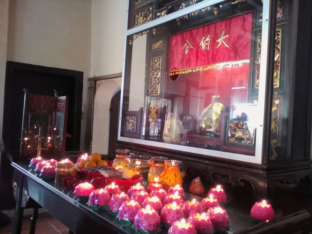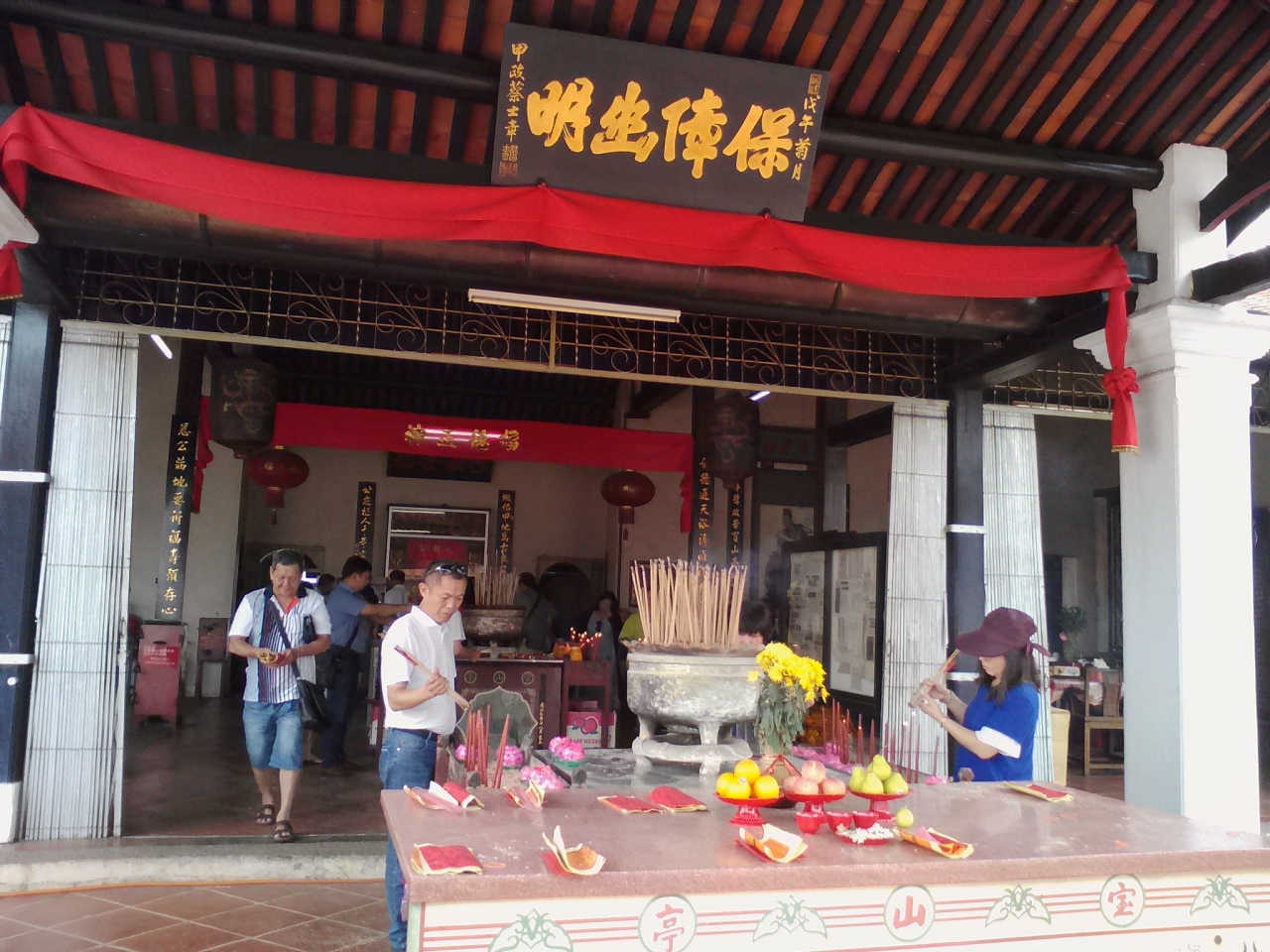 門には寶山亭と書かれています。わかりやすく書けば宝山亭。宝の山とはこれいかに。ちょうど中国人の団体観光客いて中はごった返し、外はフルーツ屋台で爆食。しばらく待っていると嵐のように去って行きました。気を取り直し見学。内部の奥には大伯公と書かれた金ピカの神様が祀られています。寺院向かって右手にある物は何?近づいてみると王井と書かれたスルタンの井戸でした。15世紀初頭にマラッカ王朝に嫁いできた王妃のために掘られたもののようですが見た目はいたって普通なので特に感想なしです。どちらも見学無料。