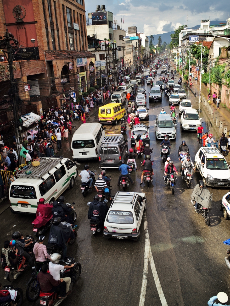 自動車やバイクの通行量が増えたカトマンズ市内にはいくつかの歩道橋があります。