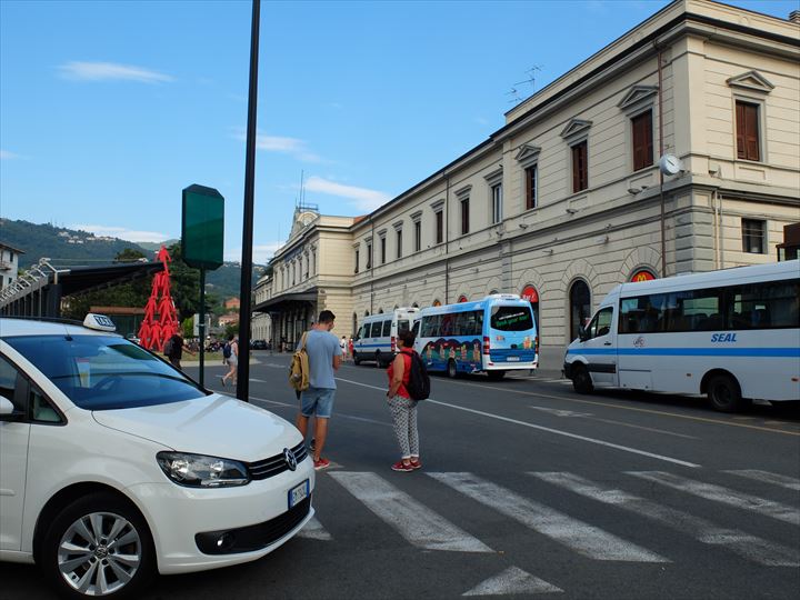 ラ・スペツィア駅に着いて、駅舎の外に出るとすぐ左手にタクシー乗り場があってタクシーが客待ちしています。