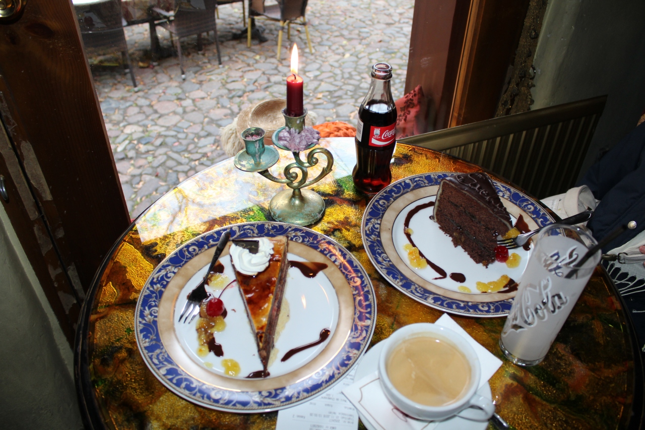寒いので、店内で名物のガトーショコラとシャンパン風味のチョコレートケーキを頂きました。