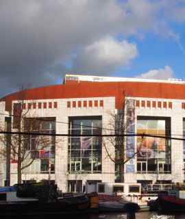 レンブラント広場からレンブラントの家に行く途中で、アムステル川沿いに建つ大きな