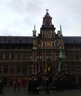 市庁舎前にはアントワープの名前の由来にもなった英雄ブラボーの像が立っています。