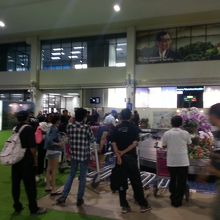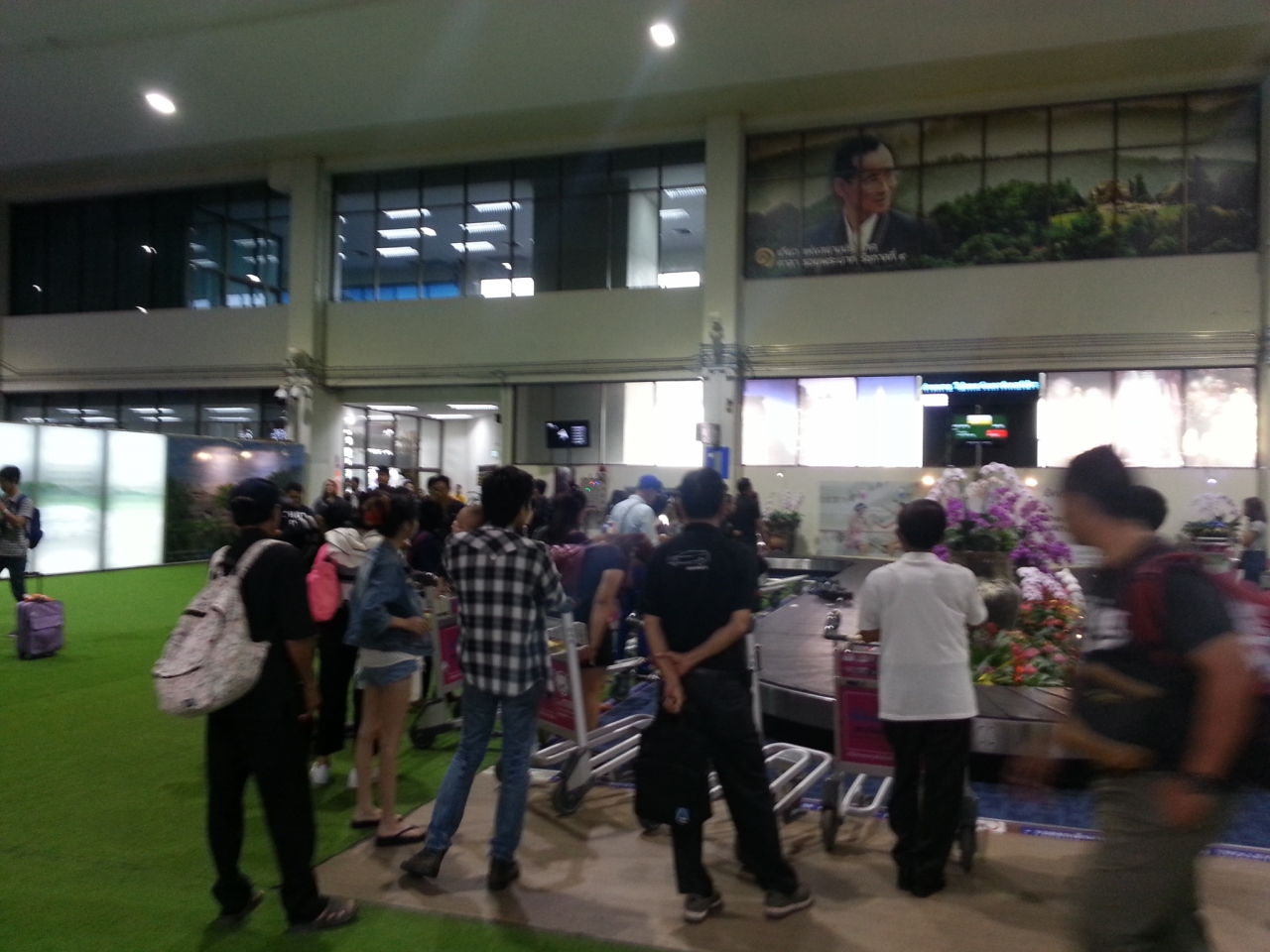 ノックエア国内線で到着しました、なぜか、国際線の到着便と途中で混ざるような状態で通路を歩きましたが、もし間違えたら、国際線の人がこちらの国内線アライバルを通ってイミグレ通過せずに入国してしまうかも、という導線です。ちょっとびっくりしました。