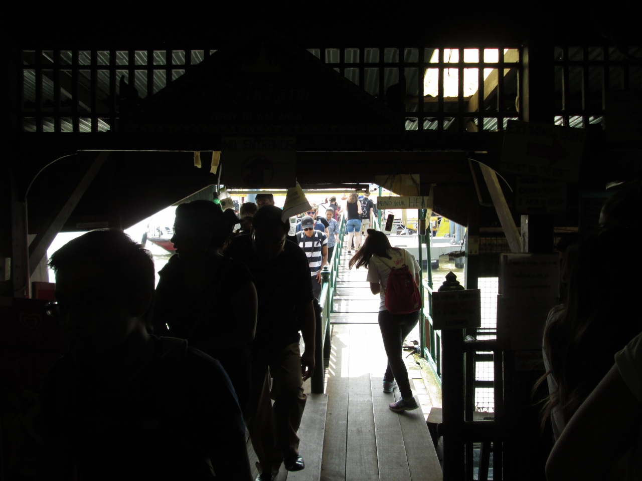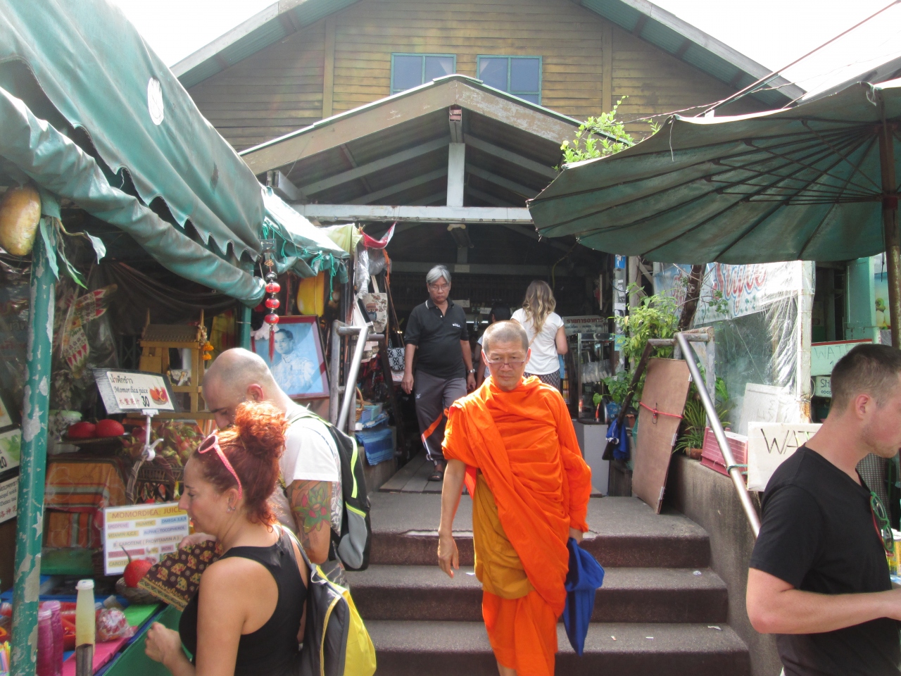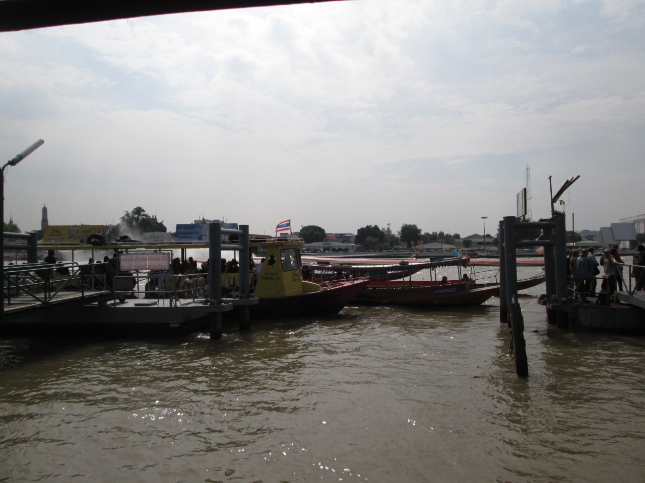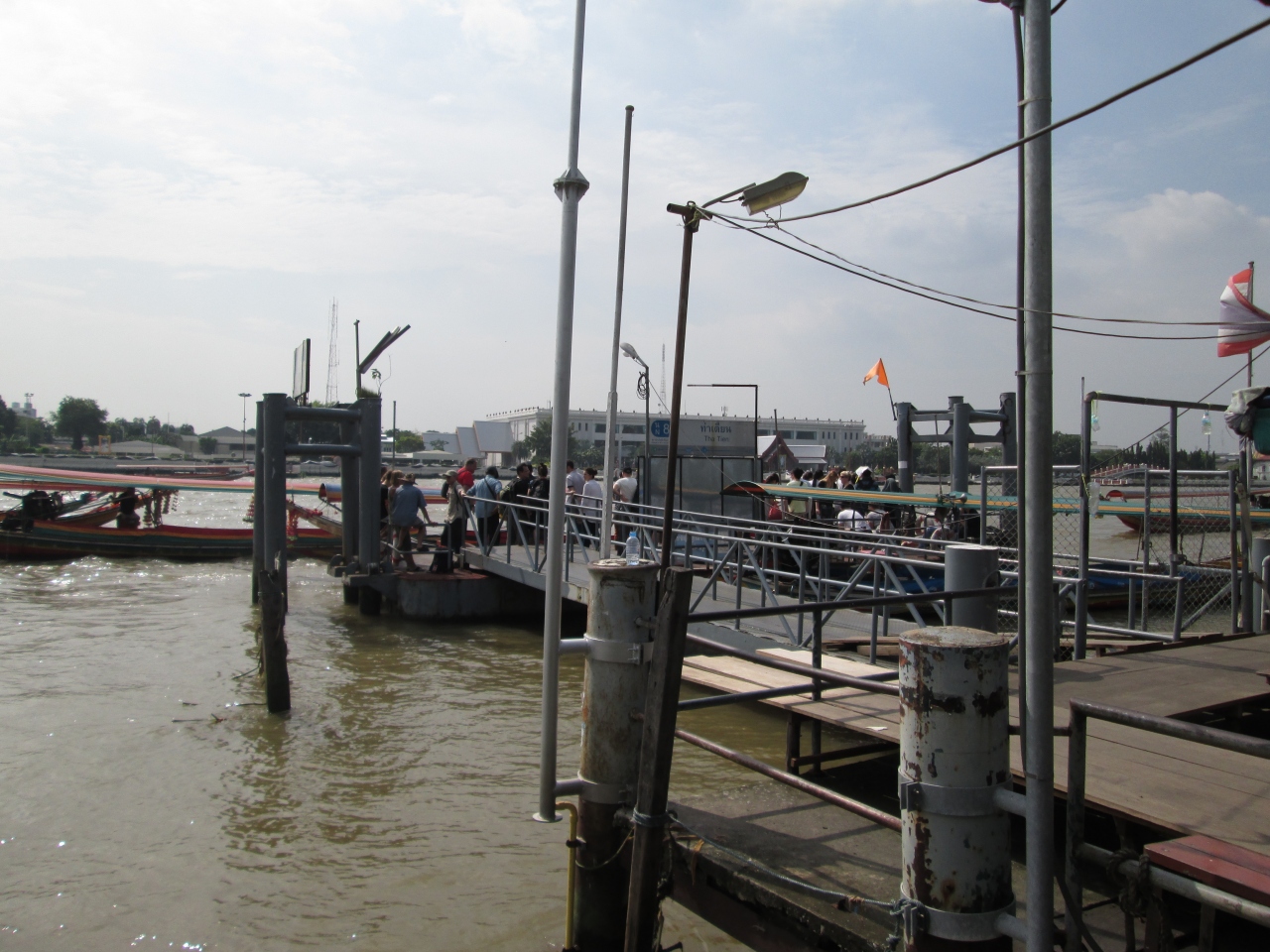プミポン国王のご逝去に際して、ワットアルン付近のターティアン船着き場は混雑していました。チャオプラヤ渡し船は黒一色でした。海外からの観光客が多いエリアで彼らは通常通りの服装で、タイ人は黒系の服、バッグ、アクセサリーを身に着けていました。