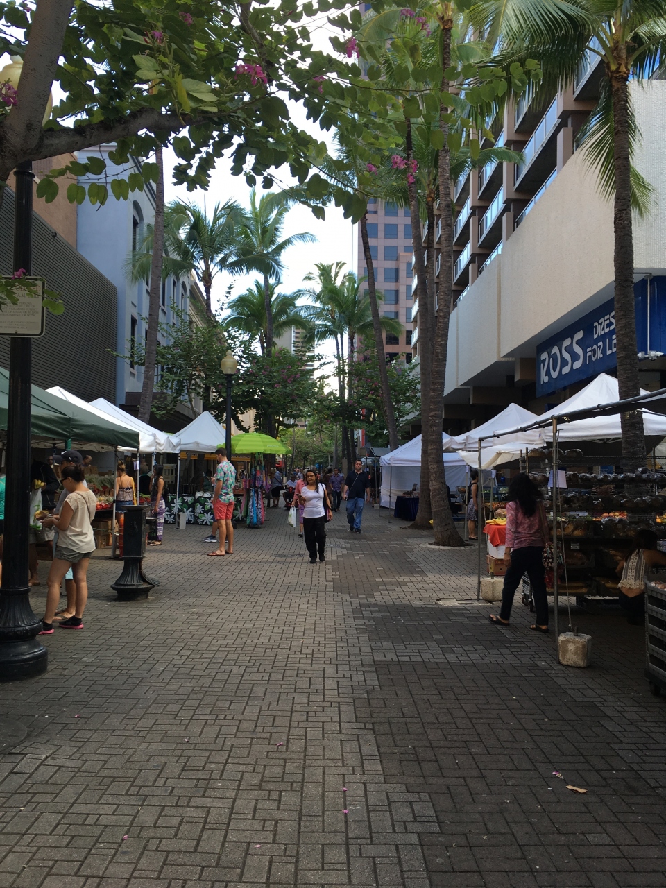 ハワイ出雲大社で下車し、歩いてダウンタウンを散策し、その後ウォルマートに行き