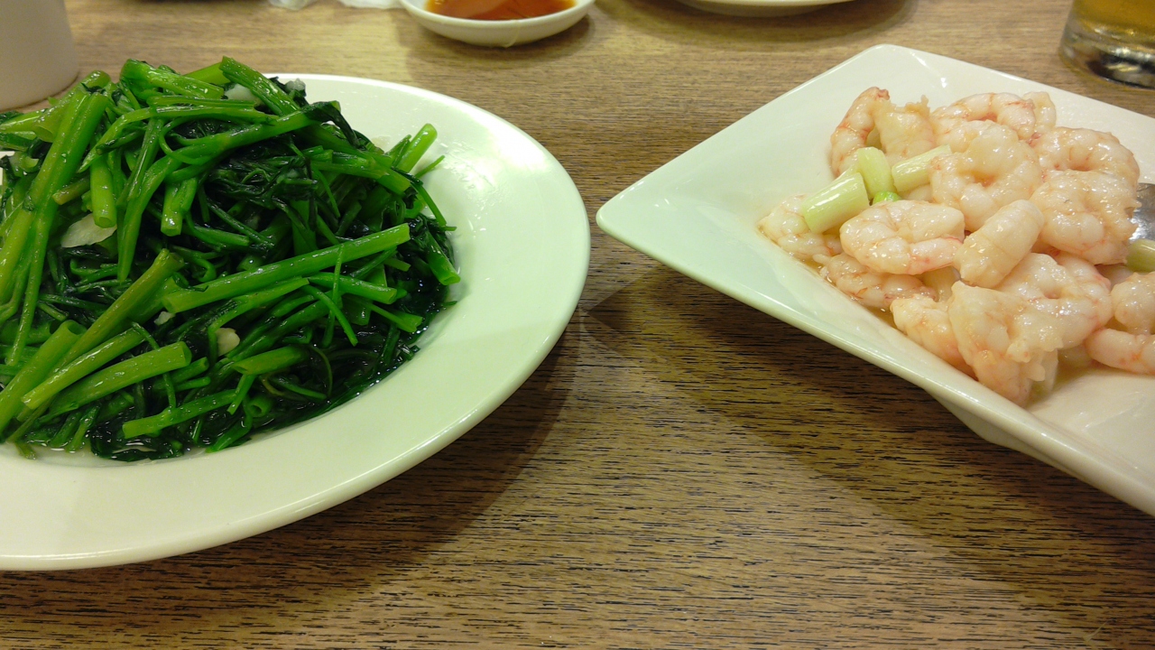 飲み物はビールそして料理は小籠包を三種類・四人前と蒸し餃子一人前そして空心菜のにんにく味炒めとえび炒めそして仕上げに牛肉麺を頂きました。