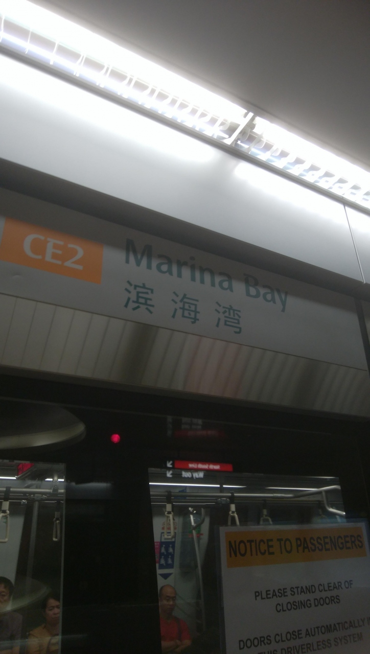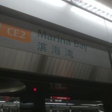 MRTのサークル線と南北線の乗換駅で駅のコンコースは階高3フロア分ぐらいありそうなぐらいの高さがあって、バスケットボールのコートぐらいの広さがあります。上下のエスカレーターとの移動とコンコースの横移動で、乗り換えが便利な駅が多いシンガポールのMRTにしては珍しく時間がかかります。また、広いコンコースには一切店舗がないので寂しい感じです。駅の名称がマリーナベイですがこちらはマリーナベイサンズの最寄り駅ではないので注意が必要です。