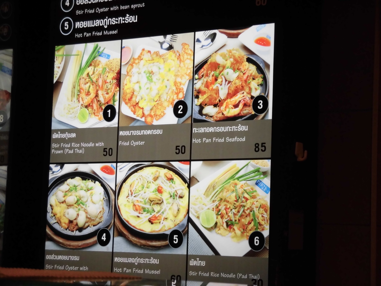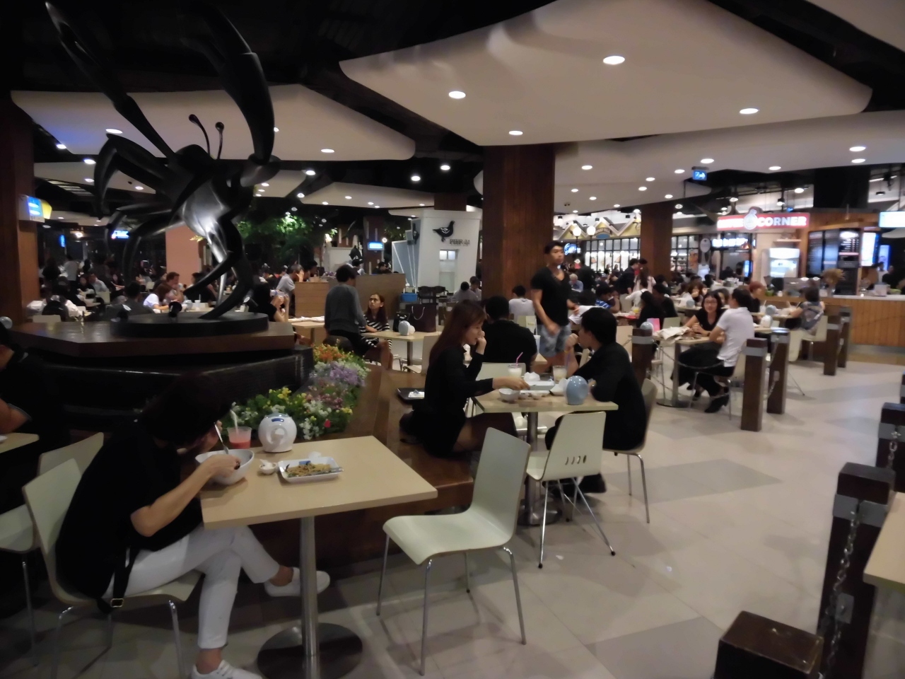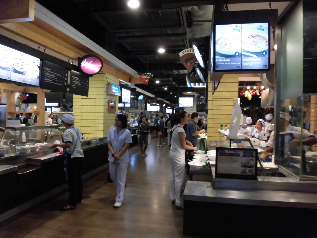 BTSアソーク駅から直結で行けますので大変便利です。ターミナル21の5階にあり、30店ほど店があり価格も安めです。利用するには、最初に「クーポン」と書かれたカウンターでフードコート専用のプリペイドカード(手数料やデポジットは不要)を購入します。最後に余った残金は、このカウンターで返金してくれます。
