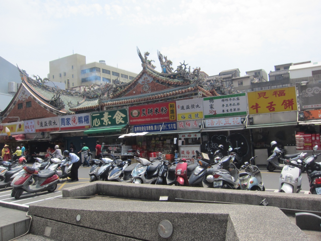 台鉄の新竹駅から歩いて10分くらいのところにある、新竹で一番古く大きな廟。廟の周りは市場や飲食店が立ち並んでいて、どこからが廟なのかよく分かりません。生活に溶け込み、一体となっている様子がうかがいしれました。