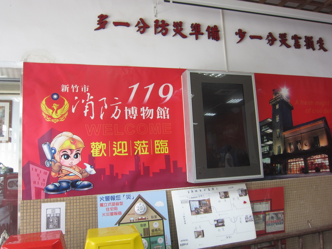 市政府の目の前,日本統治時代からある消防署は今でも現役で,消防士さんたちがトレーニングに励んでいました。その脇で,消防の歴史を紹介した小さな博物館が展開されています。入場は無料で,消防士さんが案内してくれました。