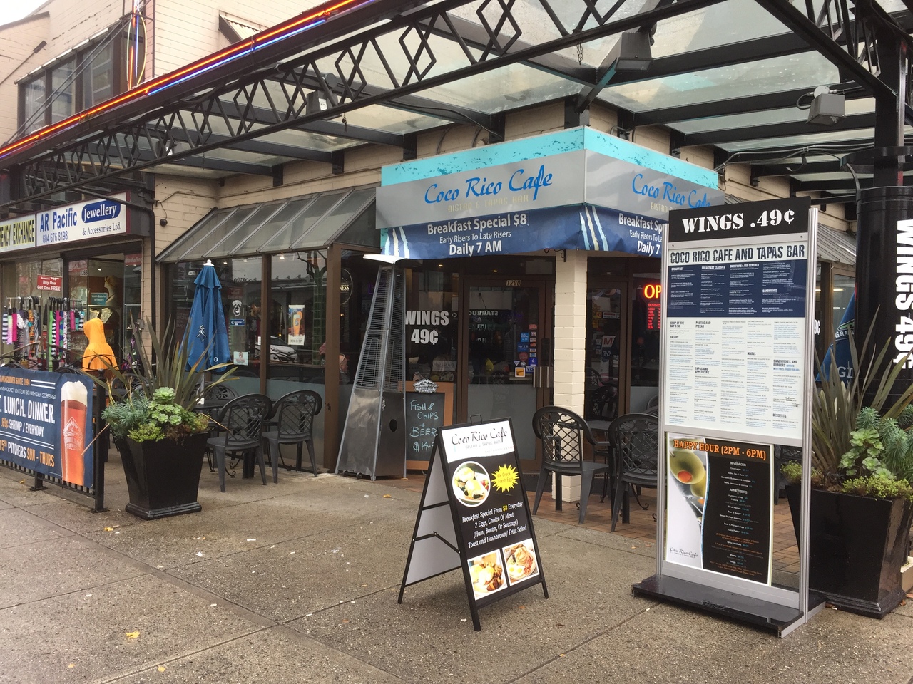 ロブソン通りに面するカフェ。夜はバーの雰囲気。サーモンエッグベネディクトをいただきましたエッグベネディクトの種類が豊富です。店内のテレビは、「アイスホッケー」が放映されていました、カナダだなぁと思った瞬間でもありました。