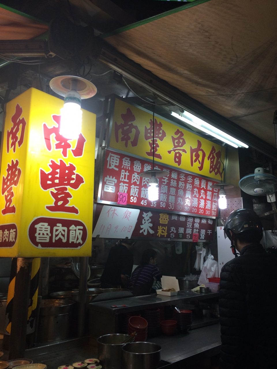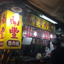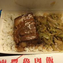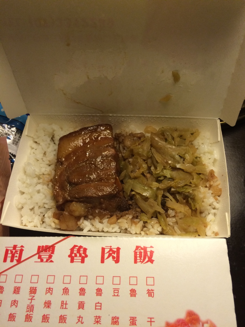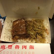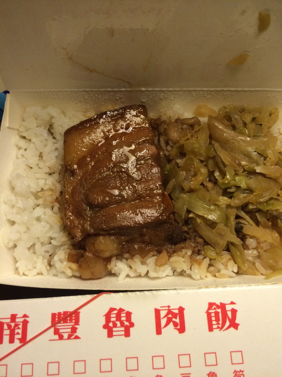 1つ50元のルーロー飯は、肉が大きな固まりが一つ。肉は嫌な匂いがなくビールのお供に最適。添付の野菜も、ご飯も汁が染みてて美味しい。息子もペロッと完食でした。