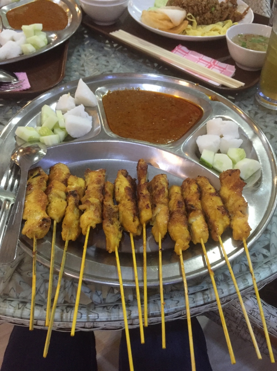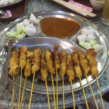 お土産の購入兼ねて、こちらに寄ってみました。お肉は鶏肉で6本と12本があり、お腹が空いていたので12本を。ピーナツソースがやみつきになりそう。多いかな?と思いましたが完食できました。付け合わせの野菜は、きゅうりかな?味も飽きずにたべれました。初めてたべたので他店との比較が出来ないのですが、日本円換算だと400円位なので満足です