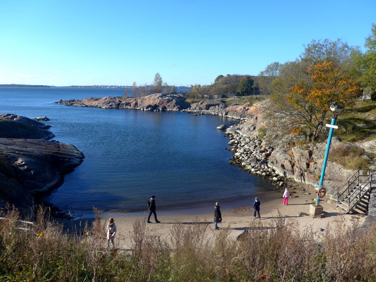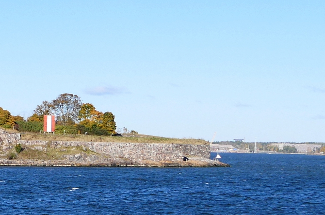航海士学校に行っている友人の案内でとなりのVallisaari(城壁島)との狭い水道が,ヘルシンキへの入り口と知る.わずか140m位の水道をViking Lineなどの大型船が通るのだ.本当にSuomenlinna(フィンランド城という意味)は天然の要害であることが分かった.またKings Gateの先には航海用の標識があった.