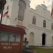 小じんまりしたかわいらしい教会。壁の塗装も新しく真っ白です。教会の小さな噴水には人を模した現代的なオブジェもありなかなかおしゃれでセンスもいいです。入口の扉は開放されていて自由に入ることができました。静かで落ち着ける雰囲気のよい教会です。