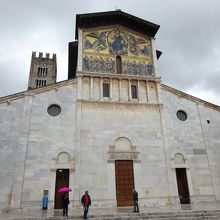 ずいぶんと横に幅広い三廊バシリカだなと思いましたが、中に入ると広々としているのに、アーチで区切られていることもあり、薄暗いです。一応、彫刻の施された洗礼槽や、礼拝堂の絵画や彫刻などの見どころの部分には照明があり、見学できます。