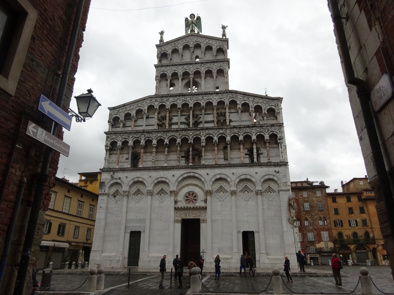 ピサ・ルッカ様式と呼ばれる柱廊のアーチの繰り返しと細かい模様の装飾が華やかな教会です。正面ファサードには色のついた石が効果的に使われており、花や動物モチーフの模様を描かれていました。内部ではガイドブックを参考に、フィリッピーノ・リッピの絵画を見学しましたが、全体的に内部は簡素です。