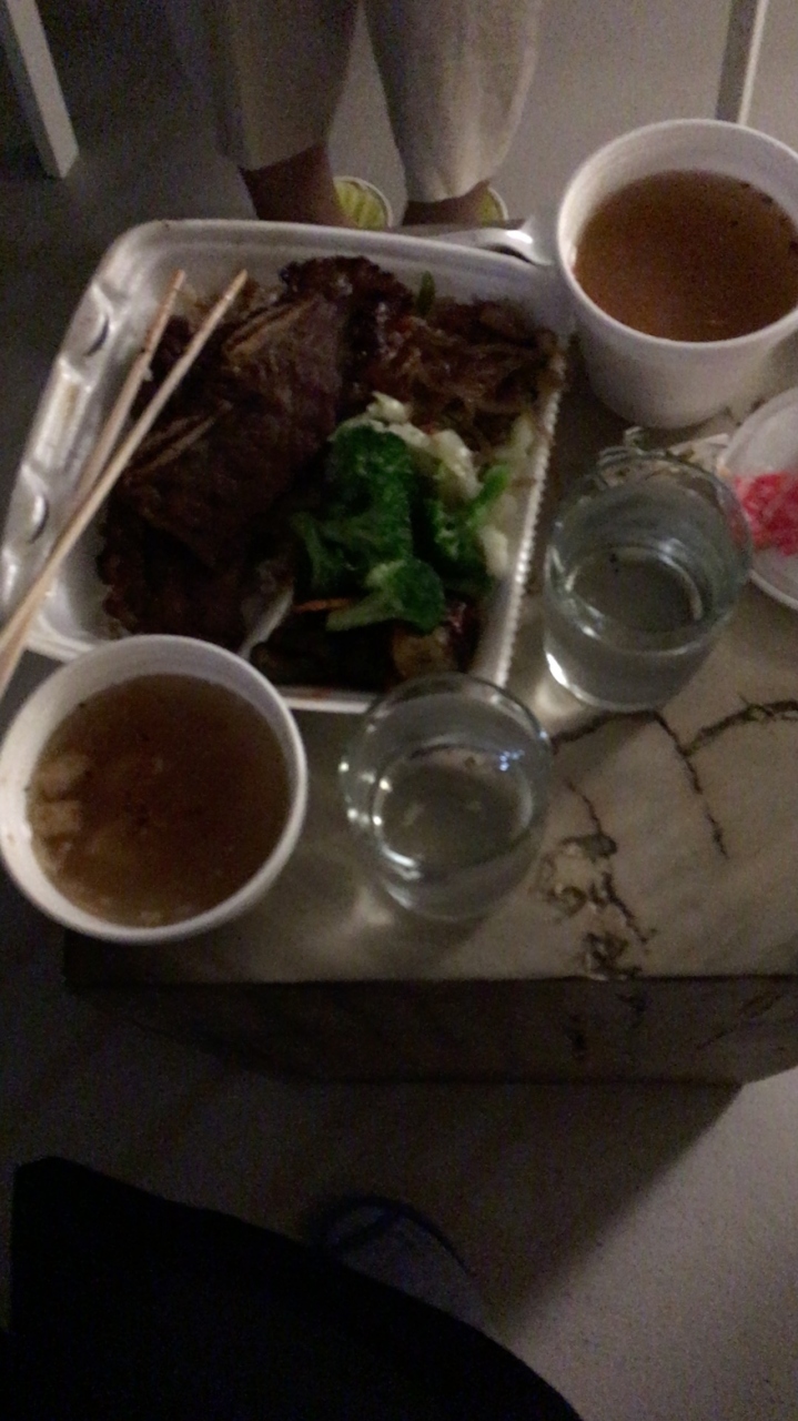 お友達のオススメで、1番人気のカルビプレートをToGoしてホテルで頂きました。カルビと好きな副菜3種を選べるので、キュウリのキムチ、チャプチェ、ブロッコリーのサラダにしました。